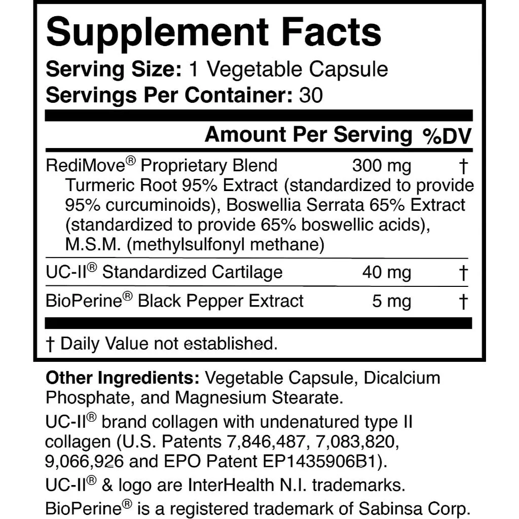 RediMove, A natural remedy for joint support, is clinically proven to relieve joint discomfort, reduce stiffness, and improve mobility within 2 weeks.